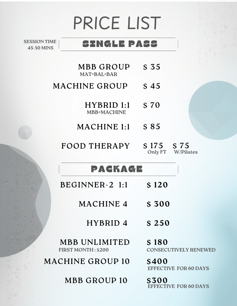 PREVIOUS PRICE LIST APPLIES TO SENIORS AGED 60 AND OVER.
